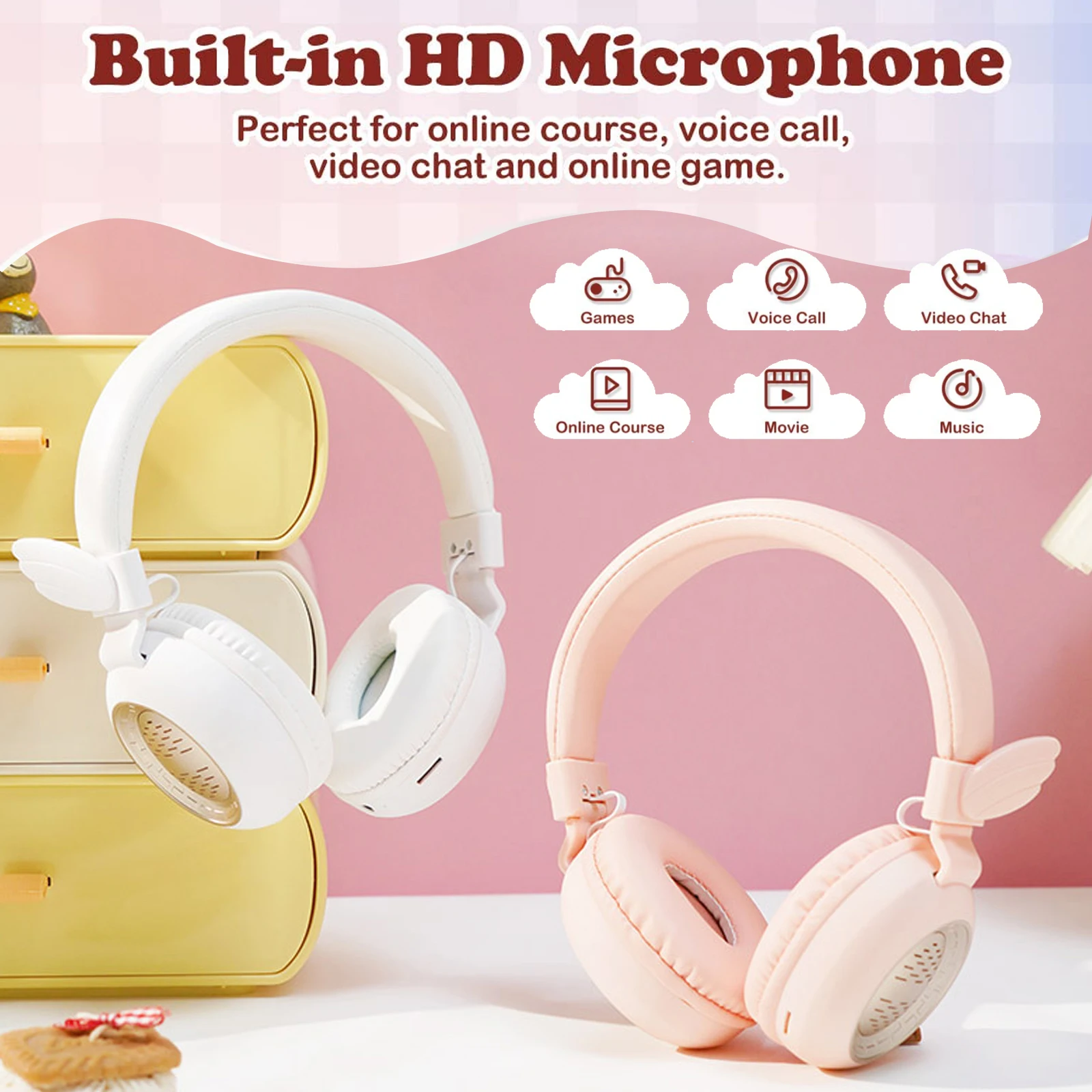 Cartoon Bluetooth 5.0 Wireless Kids Headphone Angel Wings Cell Phone Gaming Headset Support TF Card AUX For Smartphone PC